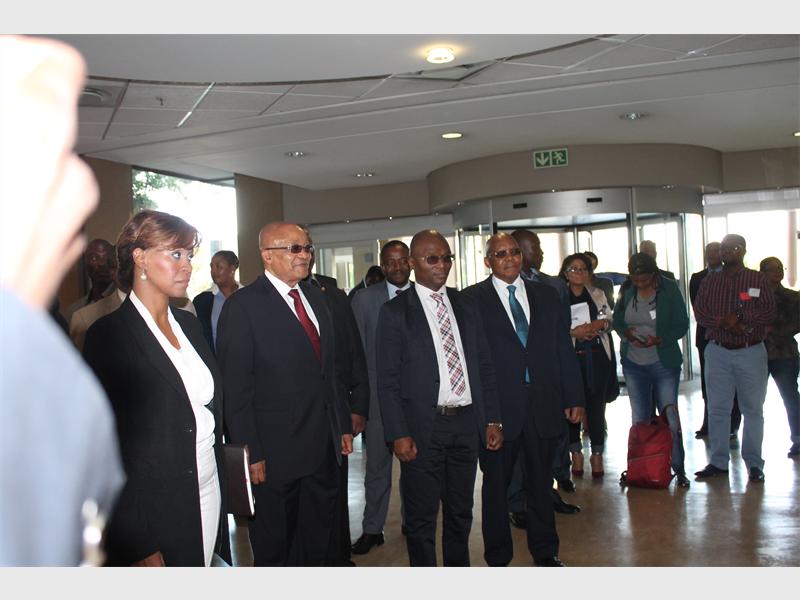 President Jacob Zuma receives a warm welcome at Eskom offices in Sunninghill.