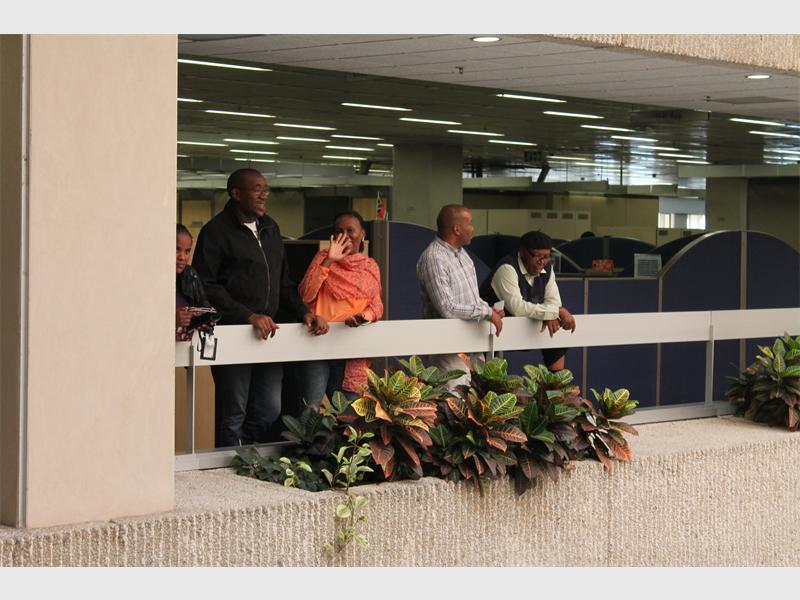 Eskom employees out to get a glimpse of President Jacob Zuma during his visit to their offices.