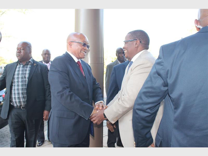 President Jacob Zuma is welcomed by chief executive officer of Eskom, Brian Molefe.