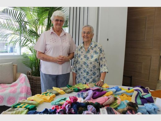 The San Sereno retirement village management sponsors the wool needed. The items reached a total of 335 with 47 large jerseys, 51 medium jerseys, 34 small jerseys, four medium sleeveless pullovers, 28 baby wear items, nine baby booties, 14 scarves, 17 gloves, 11 mittens, 52 beanies, a pair of bed socks, 27 large blankets, 25 small blankets and 15 toys.
