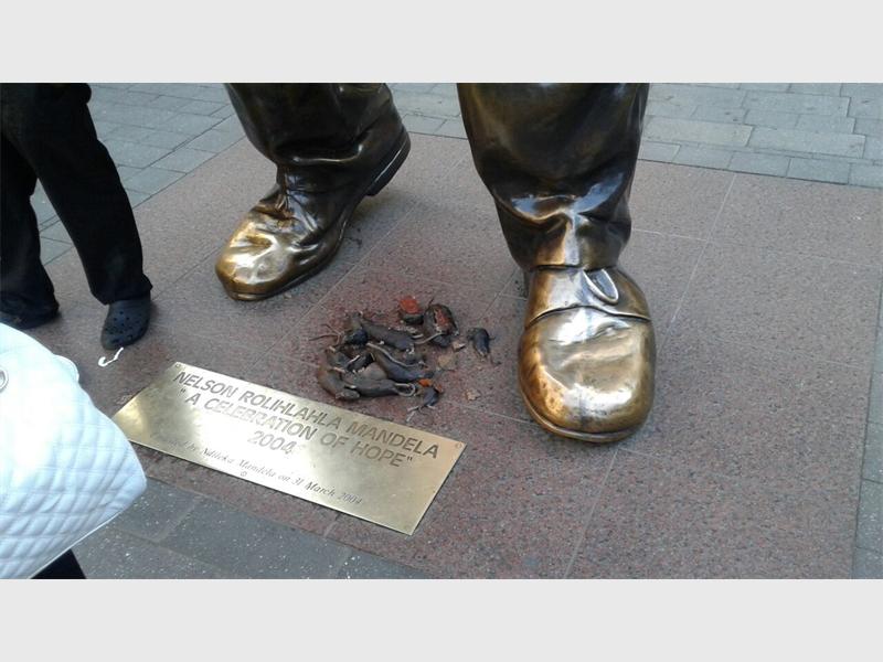 Rats dumped at the feet of Mandela’s statue in Nelson Mandela Square