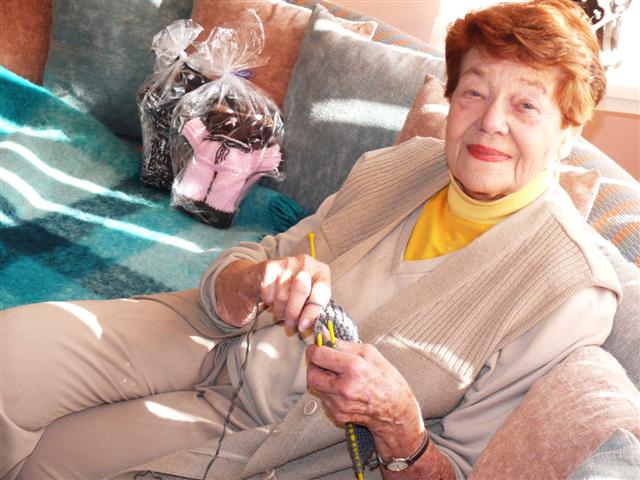 Stewart (87) has single-handedly knitted about 80 jerseys for the dogs and cats of the SPCA each year for the past 20 years.