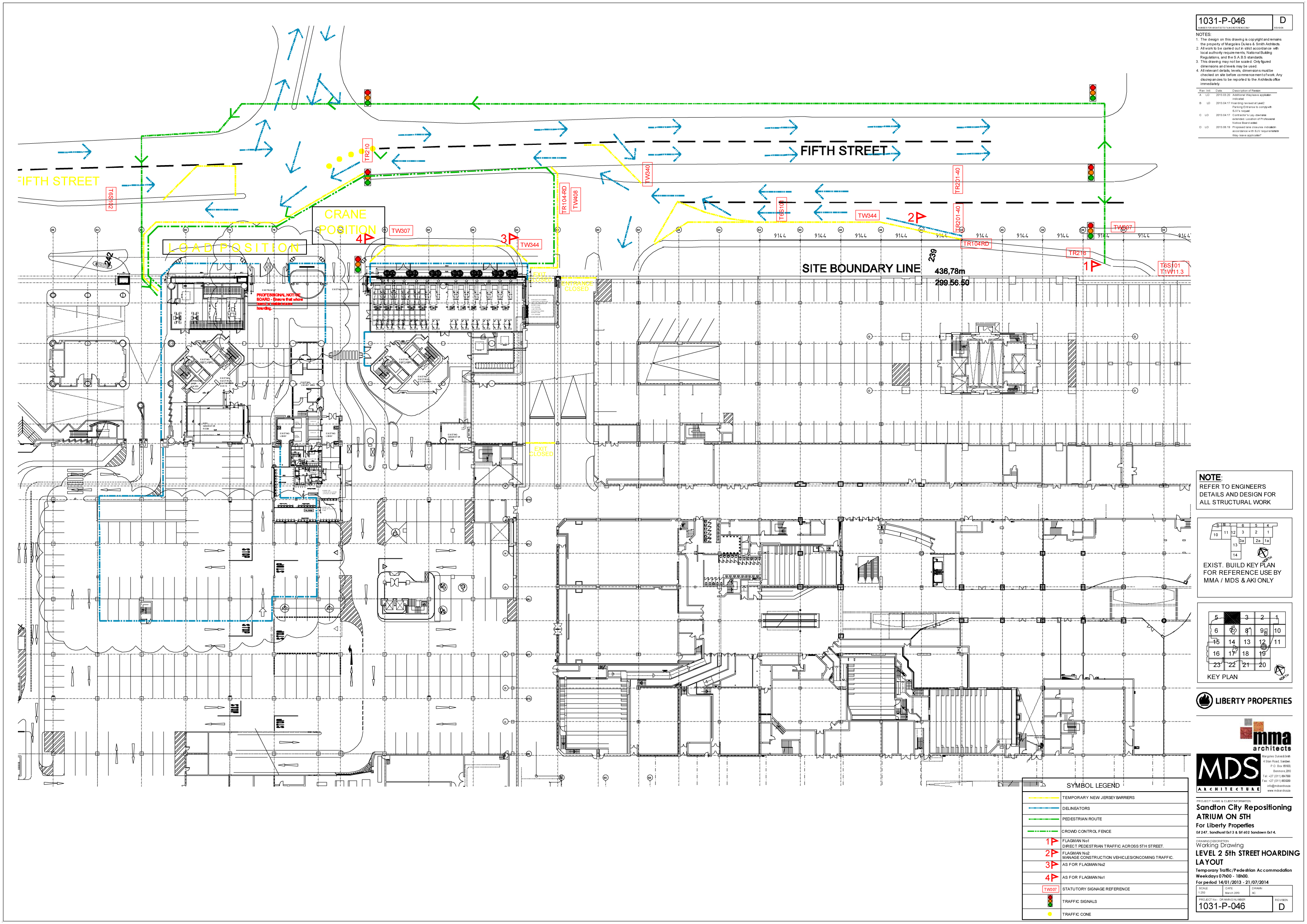 Pedestrians will be redirected to make use of the northern walkway along 5th Street to ensure their safety. Pedestrians will also be directed to use alternative entrances into the shopping centre.