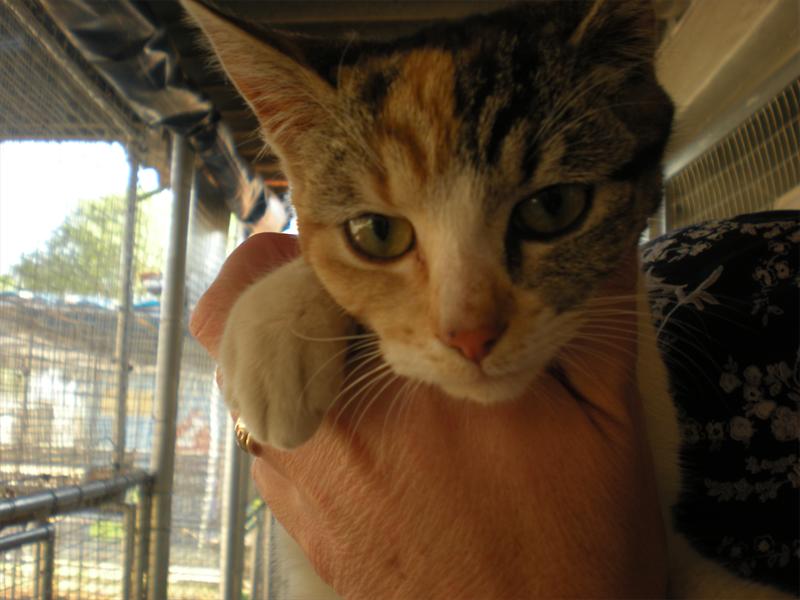 Dee is a seven-month-old, female, domestic, short-haired, calico cat. She came to the SPCA as a stray and is affectionate.