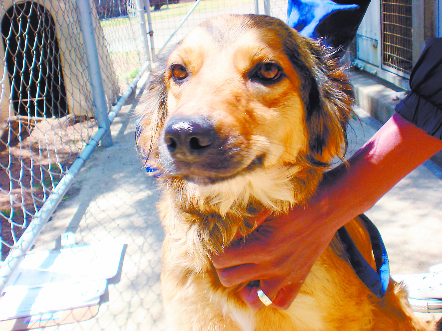 Ruby is a female, two-year-old, cross collie. She was unwanted by her previous owners and is gentle.