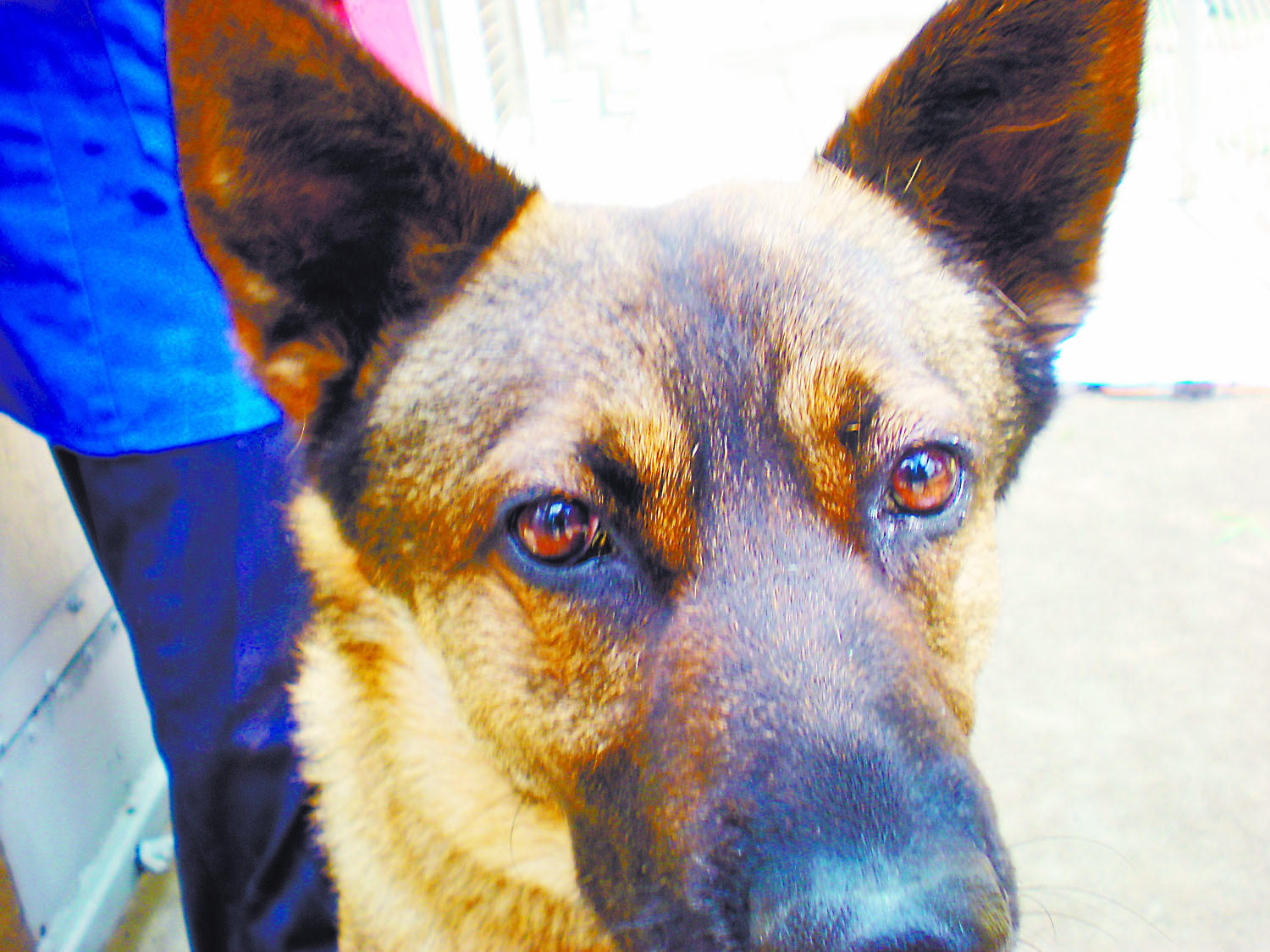 Wolfie is a male cross German shepherd of unknown age. He came to the SPCA as a stray and is obedient.
