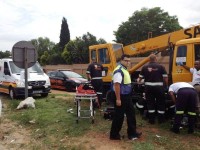 On arrival they found a man trapped beneath a crane. It is believed that while he was working with the gearbox, the mobile crane ran over the technician and trapped him underneath crane. He sustained serious injuries.