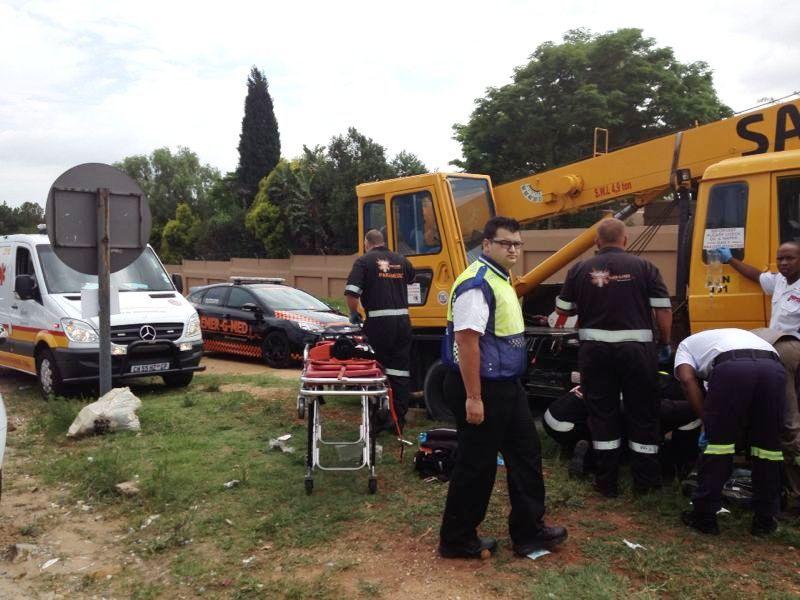 He sustained chest injuries, bi-lateral lung contusions, a broken right shoulder, as well as a compound fracture to his left ankle. He was rushed to Sunninghill Hospital in a critical but stable condition by Emer-G-Med’s A01, with ALS paramedic Wayne Broodryk, for urgent medical care.