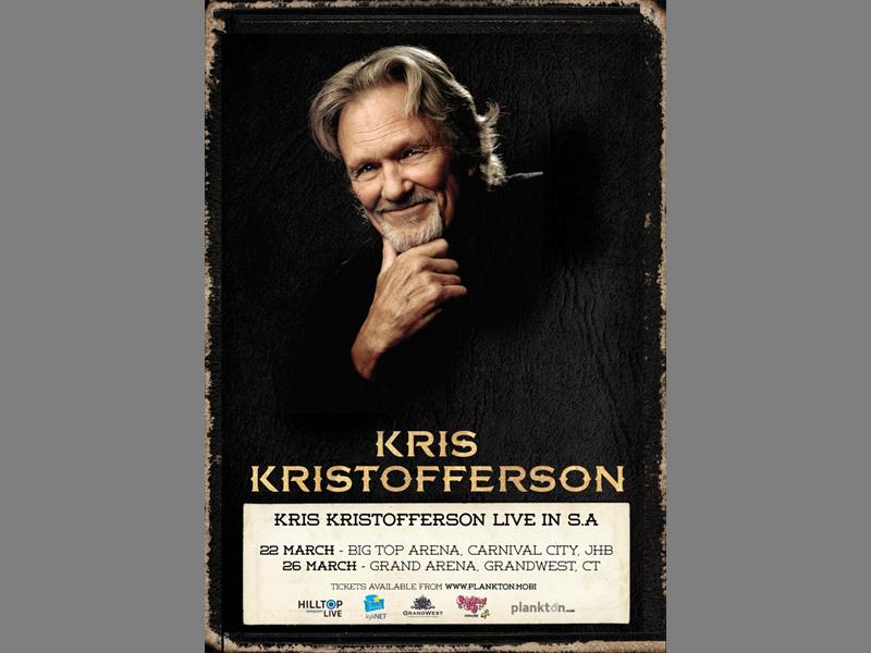 The legendary singer, Kris Kristofferson, will be in Johannesburg in March next year to perform his timeless classics before South African audiences.