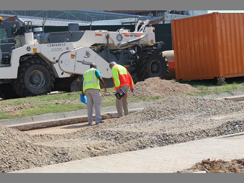 The Johannesburg Roads Agency inspectors check the progress of the road repairs on Arkwright Avenue in Wynberg.