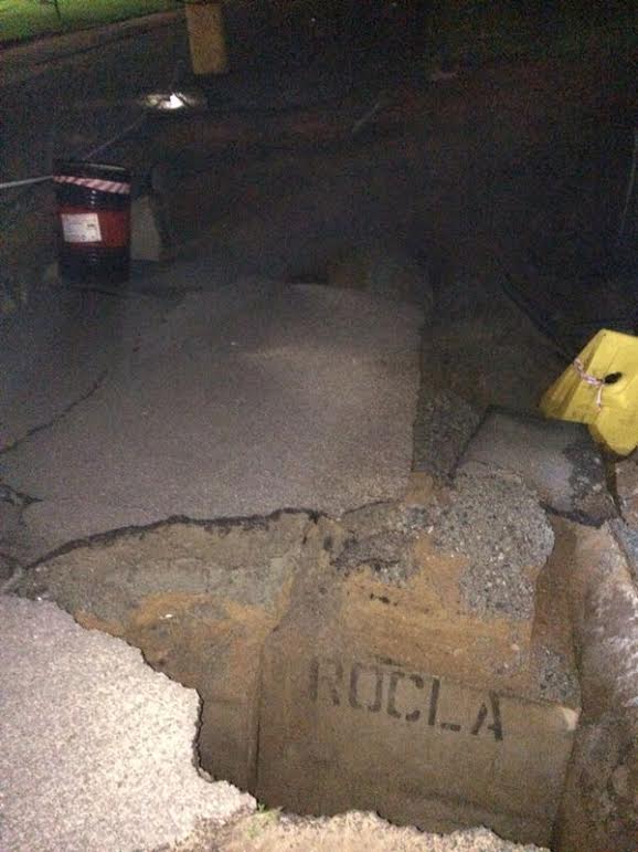 To add to motorists woes there is also a large pothole in the remaining section of road. “This is made more hazardous because motorists are trying to avoid the collapsed section and they are driving into the pothole,” McGill said.