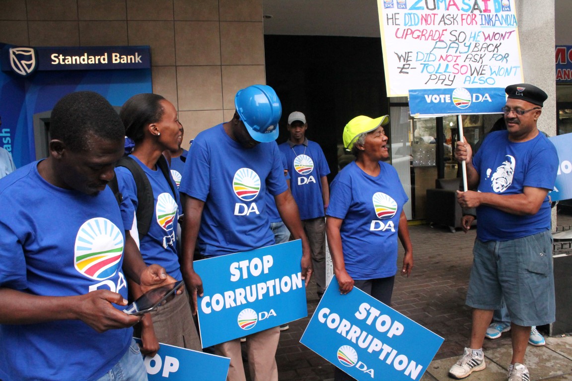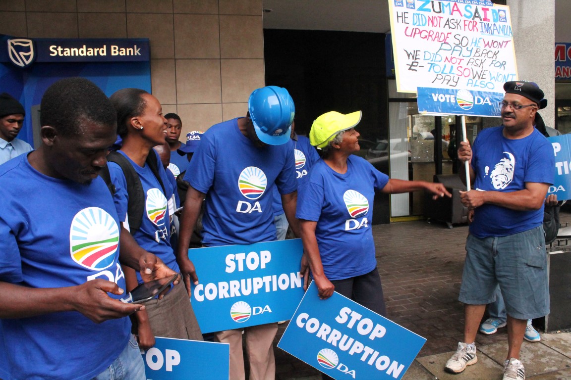 Wearing DA apparel, a group of protesters carried posters which read “Stop corruption”. They also chanted anti-Zuma slogans and called for Zuma to be removed from office.