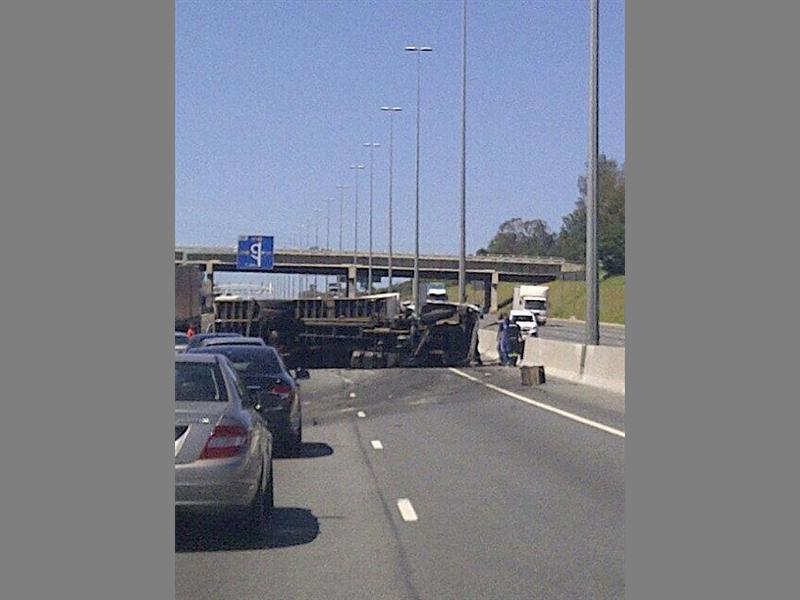 SUNNINGHILL - An overturned truck on the N1 highway before the Rivonia Road offramp caused heavy delays coming from William Nicol Drive on Thursday afternoon.