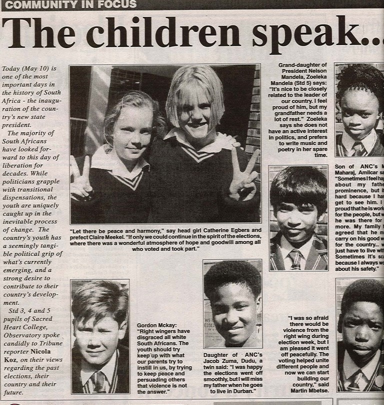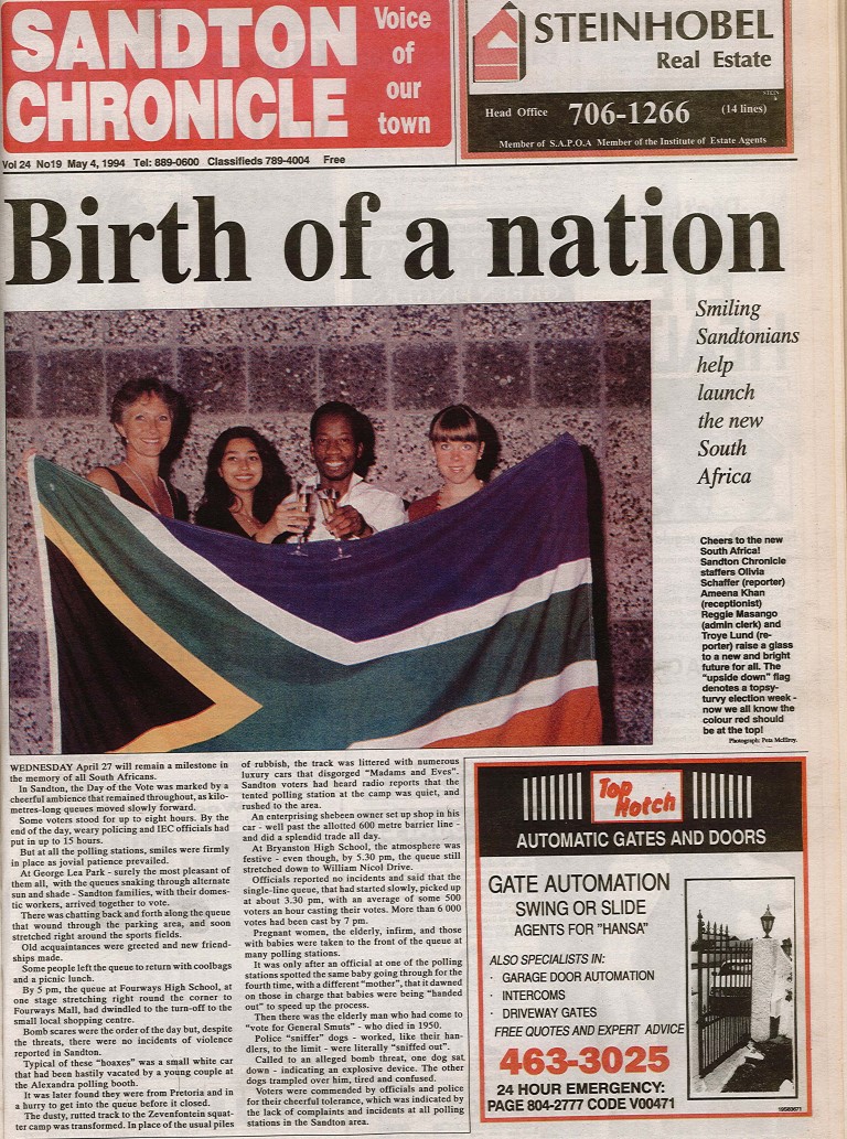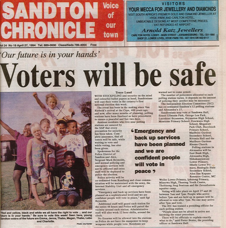Newspaper coverage ranged from how safe voters would be on election day, to children’s views on South Africa’s new found freedom.