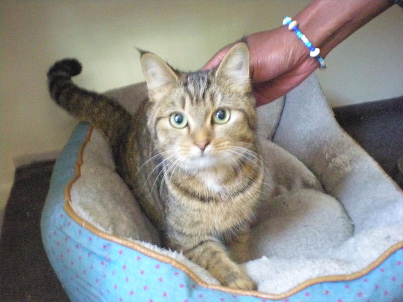 Sherry is an 18-month-old female, domestic, short-haired tabby cat. She came in to the SPCA as a stray and is lovable.