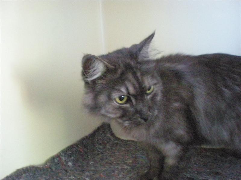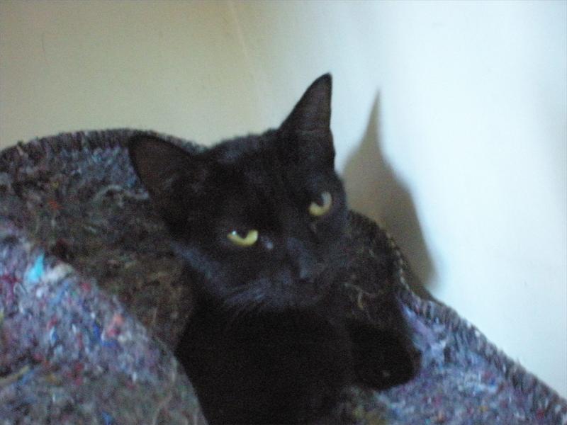 Jade is a two-year-old female black domestic, short-haired cat. She was unwanted by her previous owners and is affectionate.