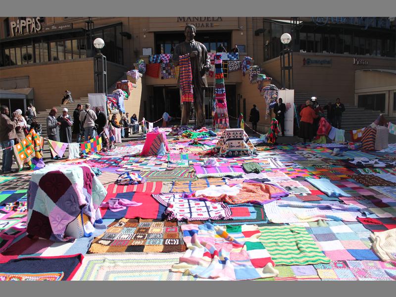 The organisation displayed the community’s generous contributions of blankets across Nelson Mandela Square and also decorated the Madiba statue with colourful blankets.