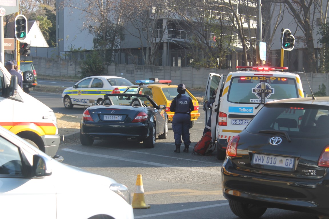 The unidentified man was driving a navy blue Mercedes Benz SLK 200 when his vehicle came to an abrupt stop at the corner of the intersection of William Nicol Drive and Cromartie Road in Hurlingham, Sandton.