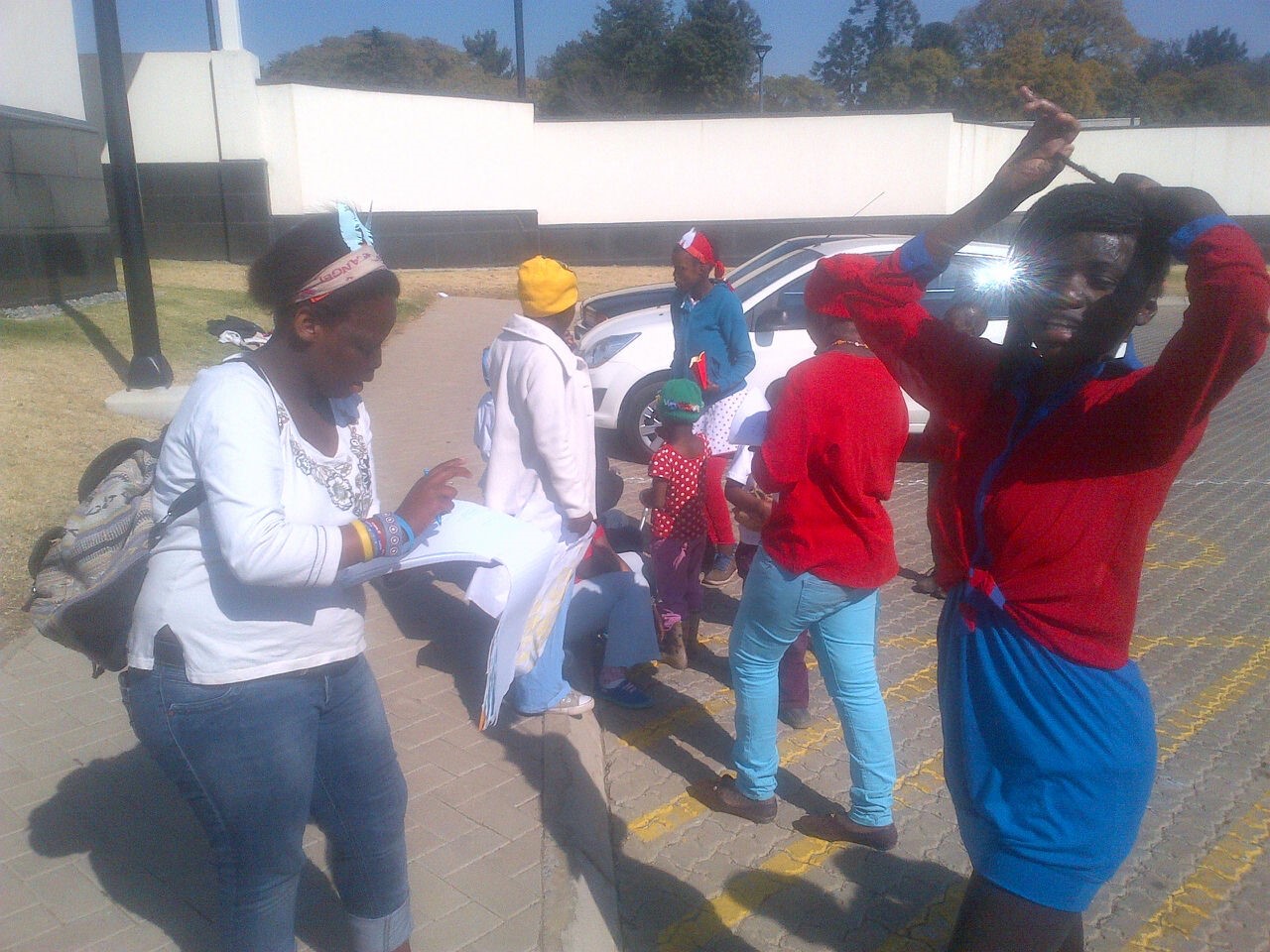 A small group of children from the organisation Children of Fire are campaigning outside the USA Embassy in Rivonia.