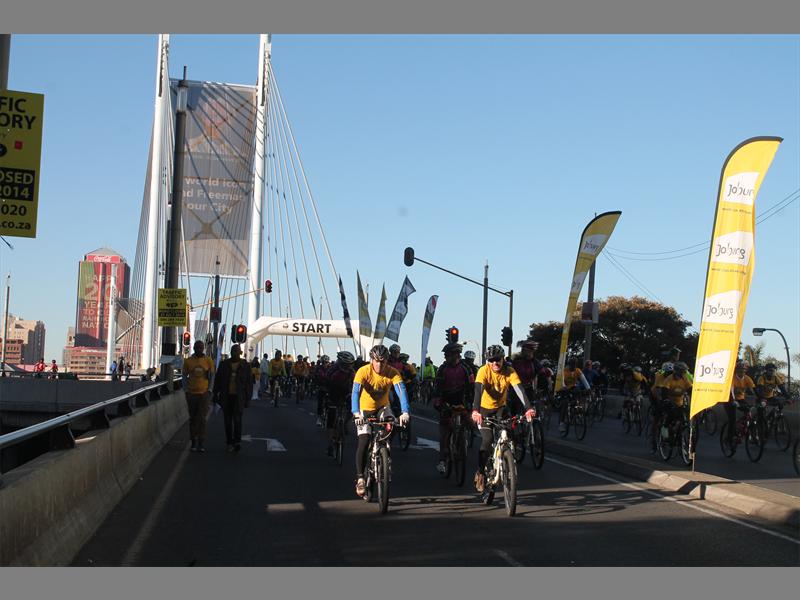 The ride, which started and ended at the Nelson Mandela Bridge, travelled along the city’s newly constructed cycle lanes in Braamfontein and Orlando.