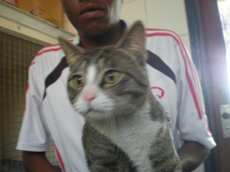 Kitty is a feline in need of a good home. Kitty is a tabby/white, domestic shorthaired one-year-old male who was found abandoned.