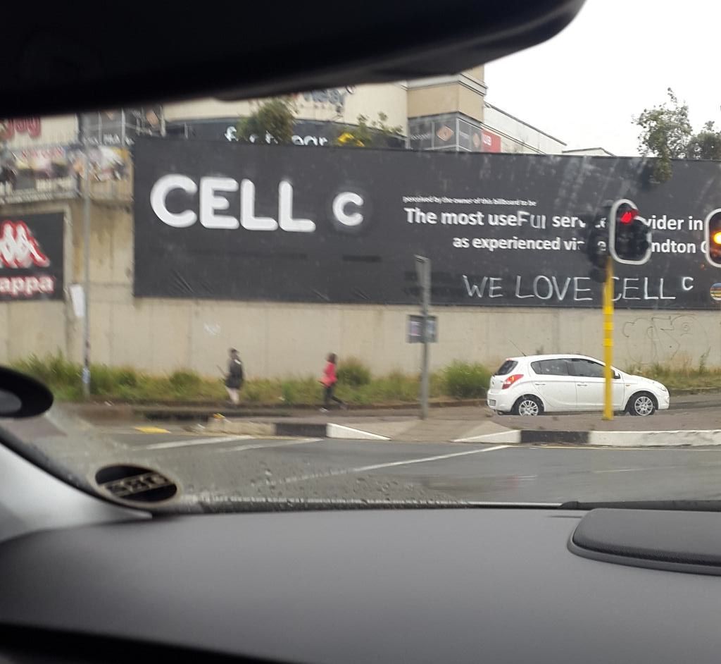 The banner, which originally branded the network provider as “the most useless service provider in SA”, now reads “Cell C, the most useful service provider in the country”. “We love you Cell C” is added at the bottom of the poster in the place where the franchise manager of the Sandton City branch was previously criticised.
