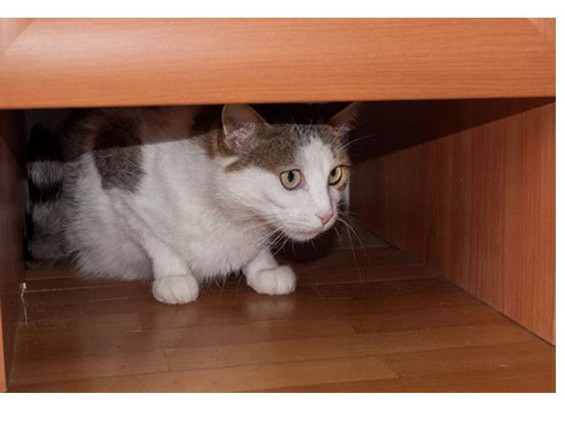 Signs of stress in both cats and dogs include cowering, soiling the house and refusing to eat.