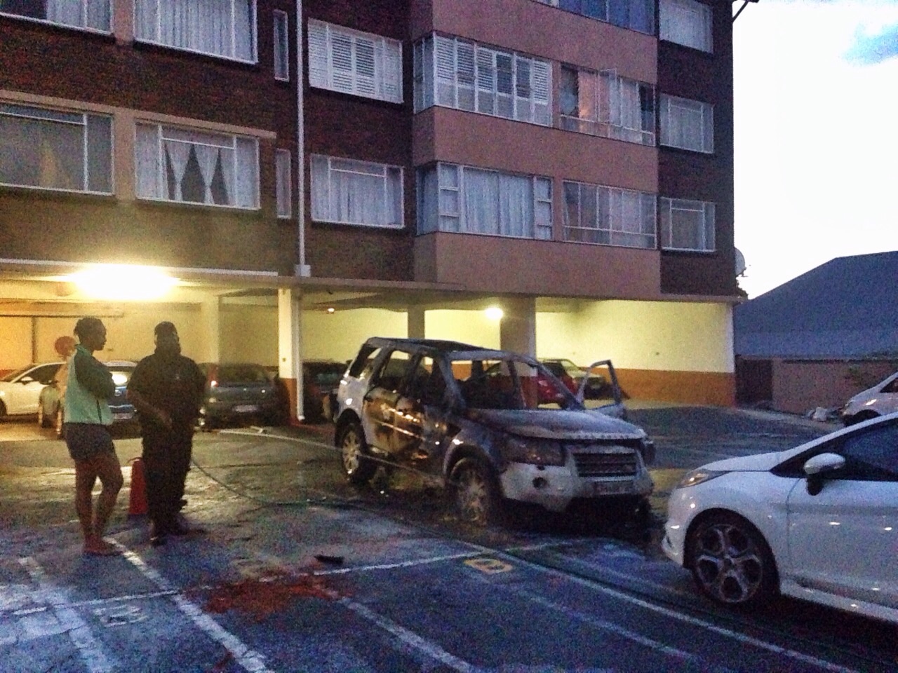 The owner and other residents immediately called the Johannesburg Fire Department but officers from CSS Tactical, who also called the fire department, and residents of the flat complex eventually killed the flames with fire extinguishers at the complex at 7.45pm.