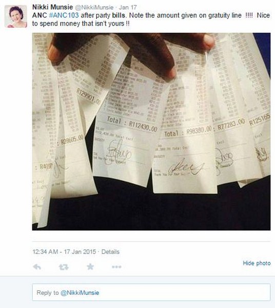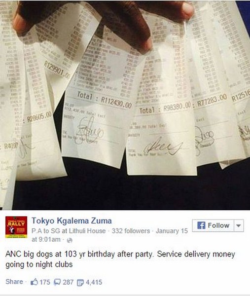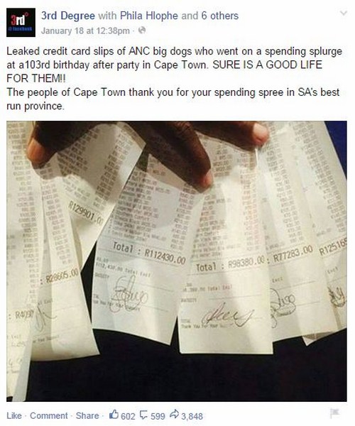 JOBURG - After a flurry of social media comments surrounding a picture of leaked credit card slips at an ANC 103rd birthday party on 11 January, however, according to reports the images are fake.