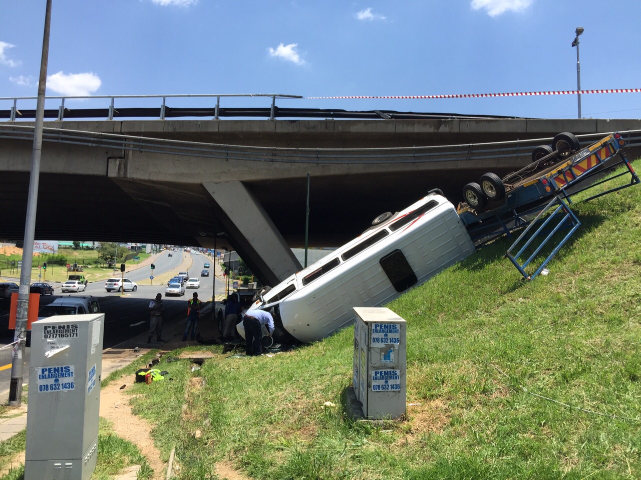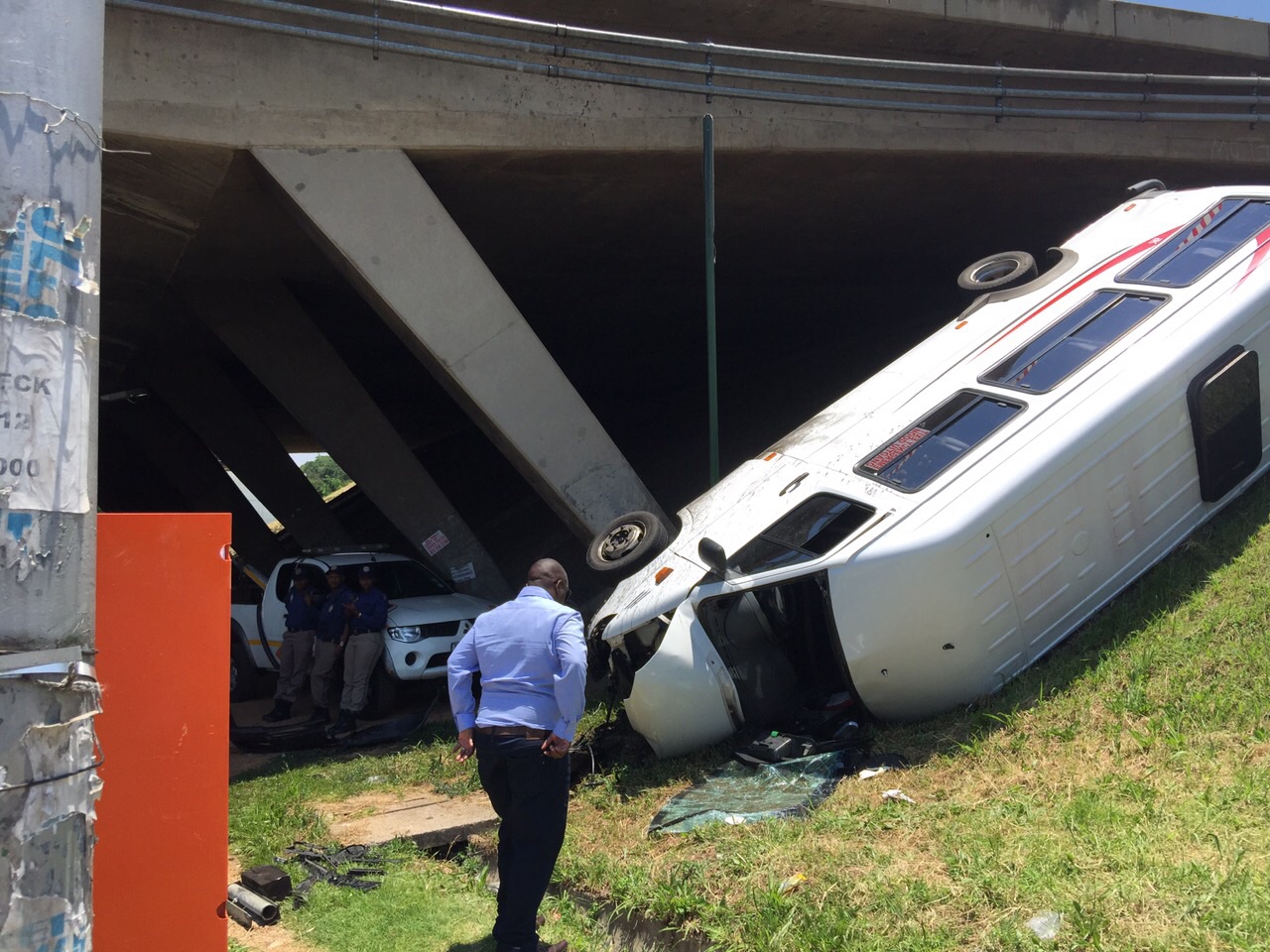 A mini bus taxi traveling along the m1 motorway skid off the road down the embankment under the the bridge on corlette drive on 25 January.