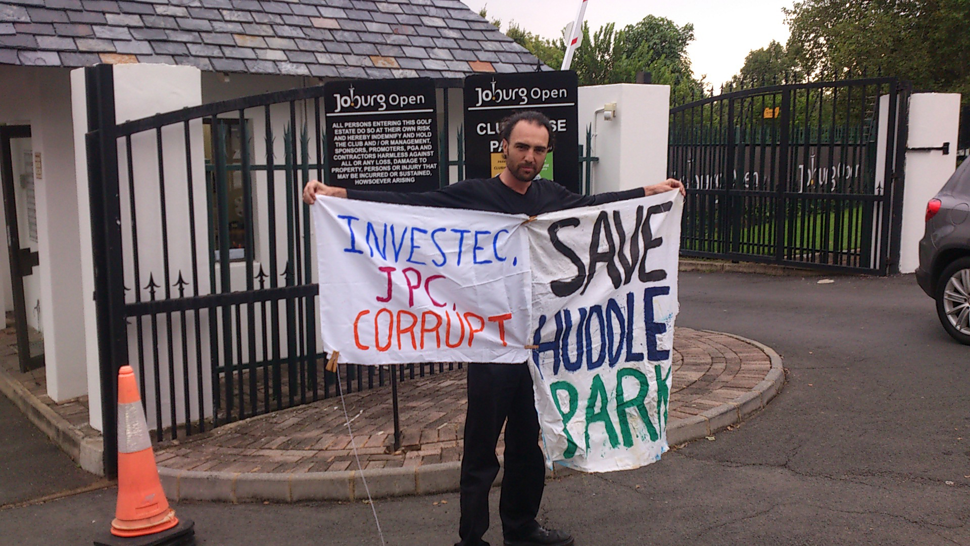 JOBURG - A community demonstration against the alleged illegal sale of part of Huddle Park took place during the Joburg Open Golf Tournament.