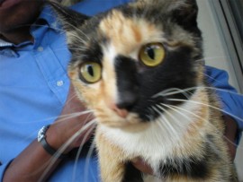 Molly, a female torti domestic shorthaired cat aged 18 months is also looking for a home. Molly was found unwanted and is described as very affectionate.