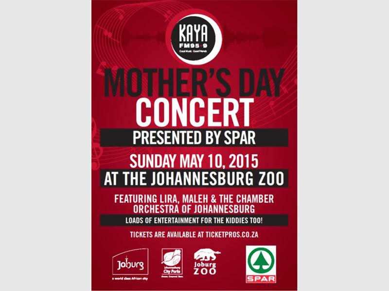 PARKWOOD - IN CELEBRATION of Mother's day, Kaya FM together with Spar will be hosting the first annual Kaya FM Mother’s Day concert to be held at the Johannesburg Zoo in partnership with Johannesburg City Parks and Zoo (JCPZ).