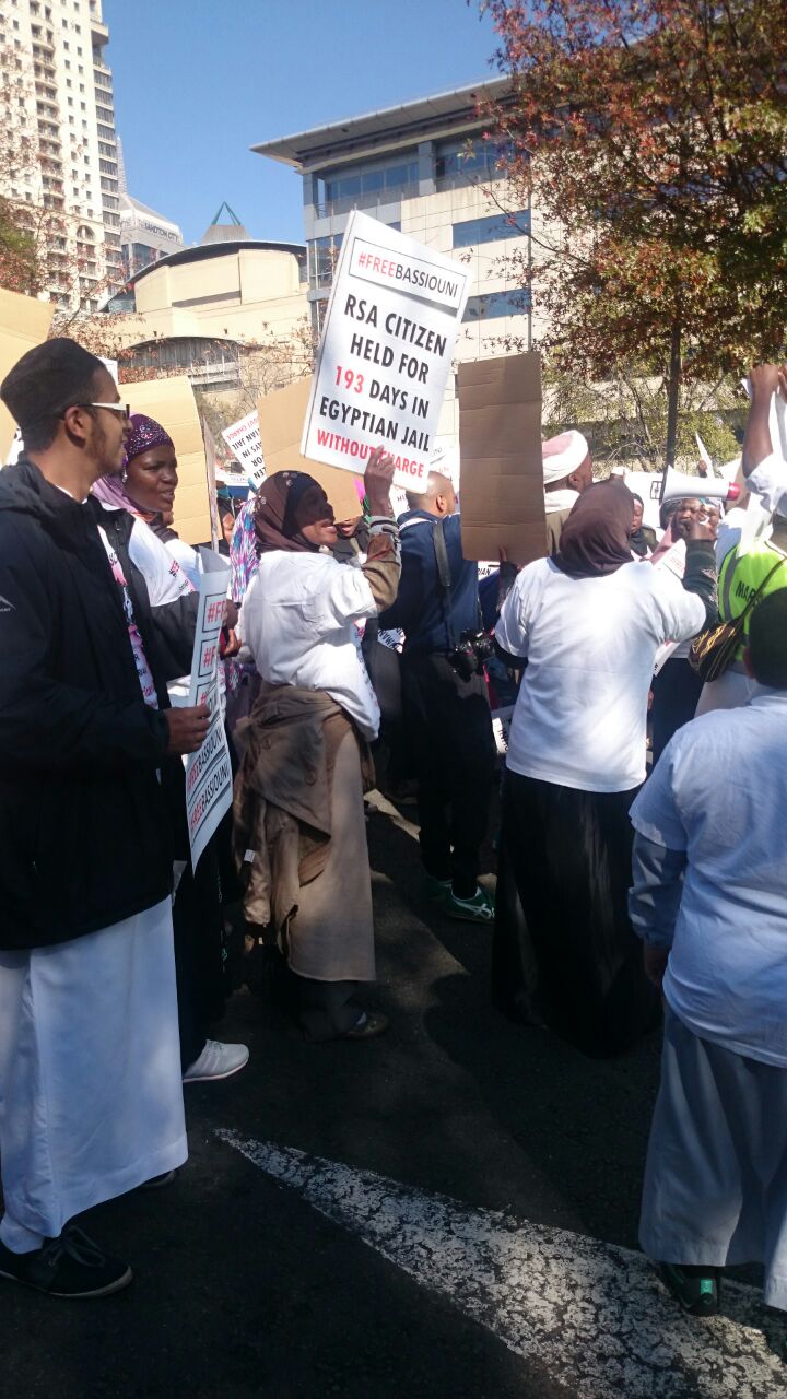 SANDTON - A crowd of around 300 people took to West Street, outside the Sandton Convention Centre to call for the immediate release of Dr Sheikh Abdus Salaam Bassiouni.