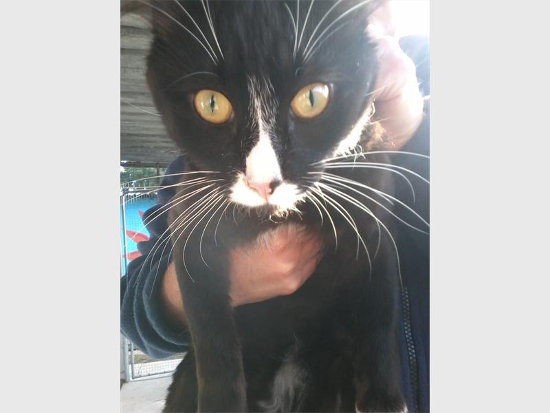 Cowboy is a loveable male black and white, domestic short-haired cat who is three years old and was found as a stray.