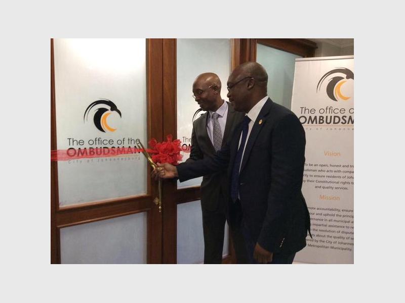 HOUGHTON - Joburg's Executive Mayor Mpho Parks Tau and the City of Joburg's first ombudsman Advocate Siduduzo Gumede officially opened the door to Gumede's new office on 1 July.