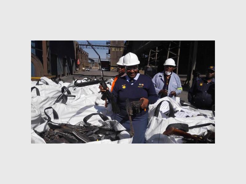 It has been reported that a massive 14 000 firearms have been transported to Vereeniging today (9 July) which are in the process of being destroyed.