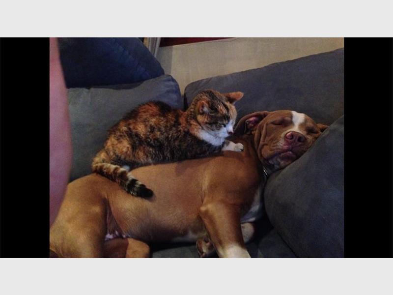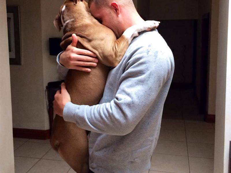 The Dover’s beloved pet Deja and Steven Dover in an embrace.