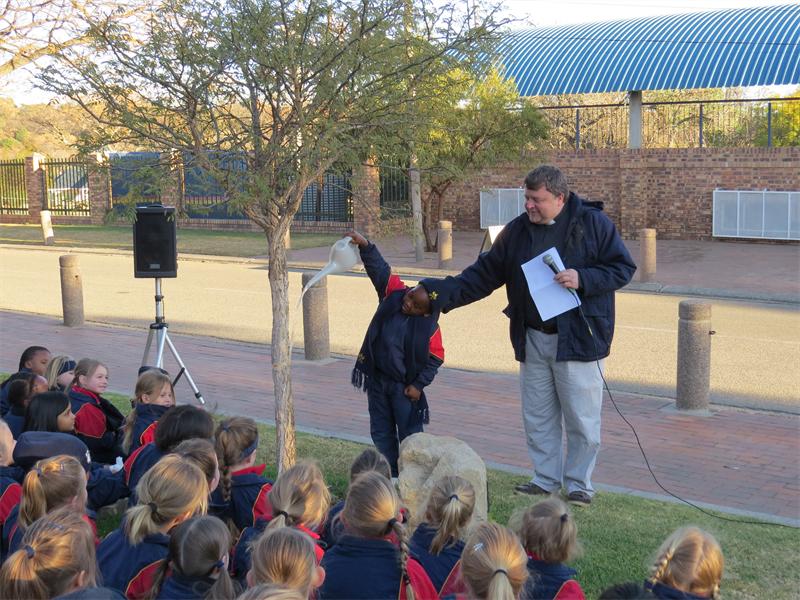 The week ended with a special service on the school’s Chapel lawn in front of a tree that was planted last year in memory of Nelson Mandela. Richard Wossler led the service.