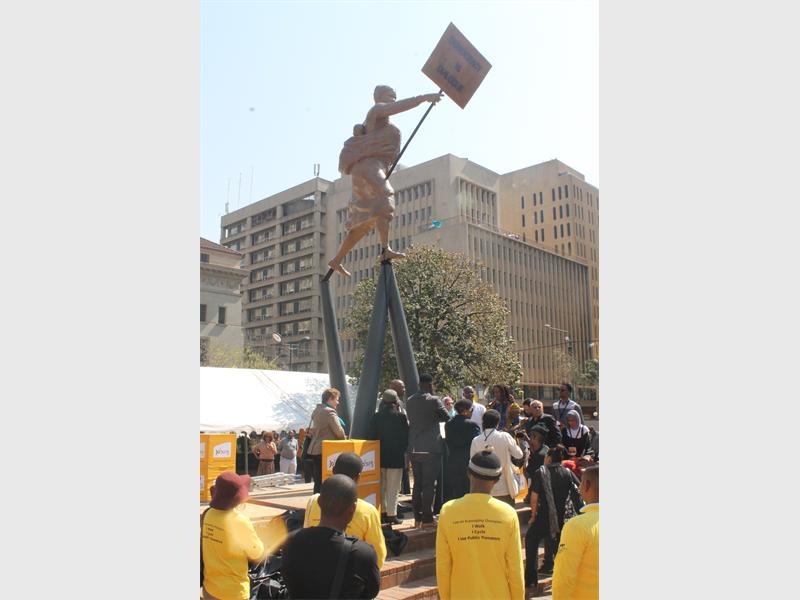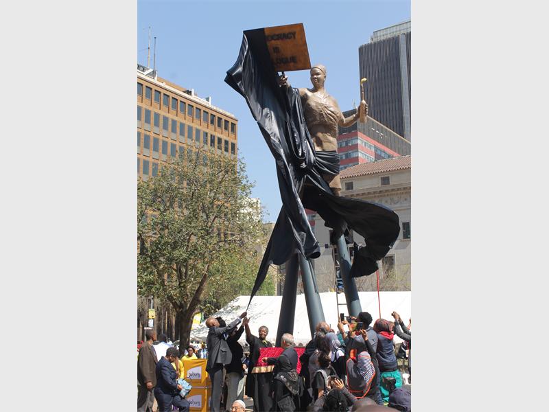Mayor Parks Tau said the sculpture by Lawrence Lemaoana illustrated the role played by women, especially that of ordinary women in the liberation struggle.