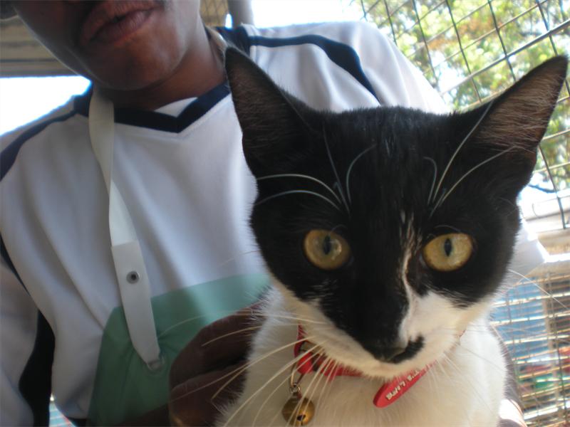 Pretty is a black and white domestic short-haired female, eight months old, unwanted and very affectionate.