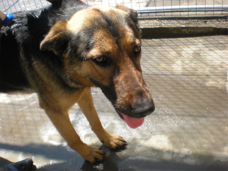 Max is a cross German shepherd, male, 14 months old, a stray and very friendly.