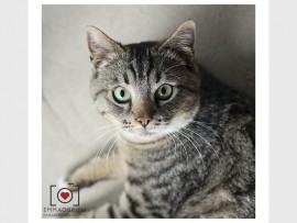 - Buki is a one-year-old, domestic short-haired female cat with black and brown fur patches. She was found unwanted and is extremely lovable