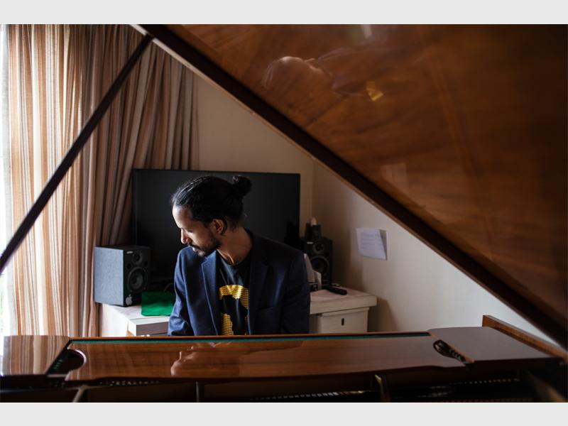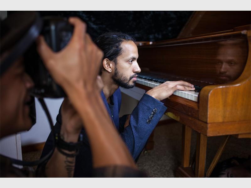 Van Wyk explained the process behind Shepherd’s portrait, which is titled, Making It Up. “Shot in Shepard’s studio at his grandmother’s home in Cape Town’s Grassy Park, Kyle is pictured playing the Grand Piano that he uses when composing his music. Seated before the instrument – his eyes shut – his reflection in the polished wood is caught in the frame. The resulting image is one that imagines a musician and his instrument as one.”
