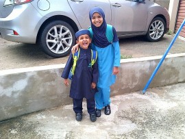 Anisa, Grade 6, Zidan, Grade 1 with mum Michelle.