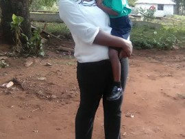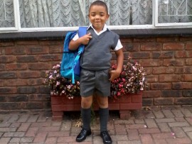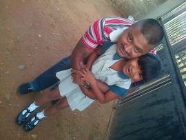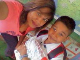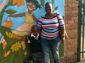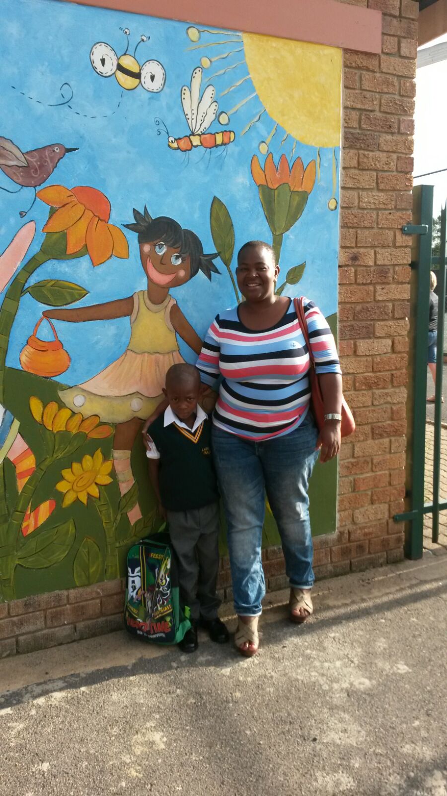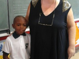 Siyanda with his grade 1 class teacher Ms Van Blek, KZN.