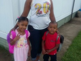 Lydia with daughters, Dunay (Grade 0) and Leanay (Grade 00), Witbank.
