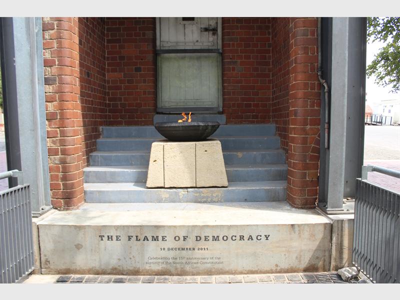 The flame had originally been lit in Qunu Village in the Eastern Cape, Nelson Mandela’s home. It was lit by Mandela himself and then transported to Constitution Hill. What it signifies is the commitment of the country to democracy, human rights and constitutionalism.