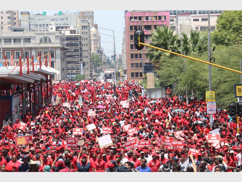 While addressing the crowd at Mary Fitzgerald Square, Malema said they were marching to make sure that Zuma paid back the money. “We are now putting a lot of pressure on the ANC, it is for the first time they are getting real opposition. We are fighting for a black nation and we are not ashamed of that,” said Malema while the crowd chanted his name.