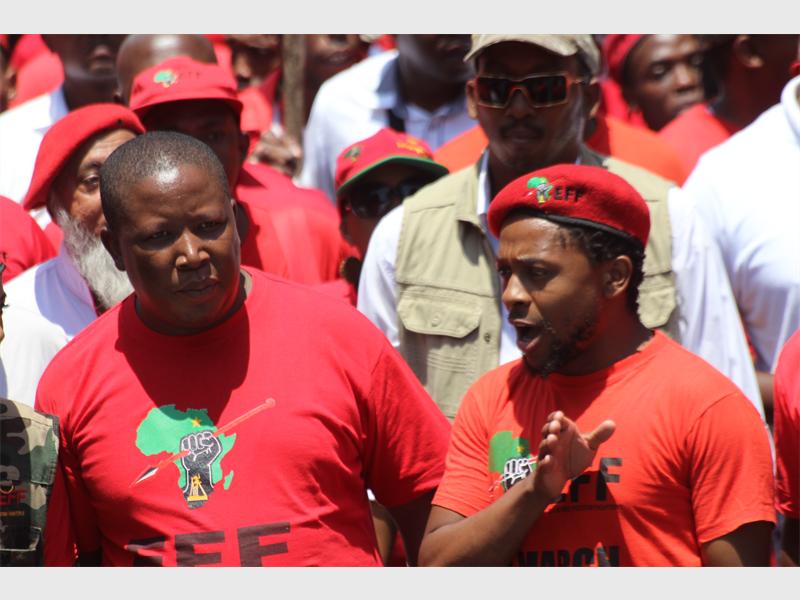 The EFF members gathered at the Mary Fitzgerald Square in Newtown where the party’s commander in chief, Julius Malema, addressed them before they began their march to the court.